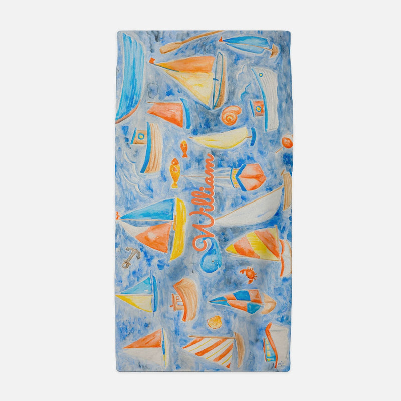 Ship Ahoy! You have found the most charming towel for your little sailor boy or girl! The special part is you can customize it with their name or favorite beach!